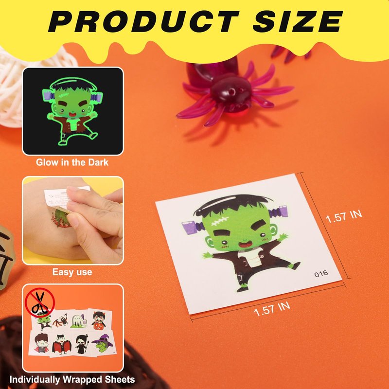 - Applicable Places: These tattoo stickers are suitable for children's Halloween party supplies, party favors, party decorations, Halloween gifts, Halloween treats, candy bag fillers, games, etc.