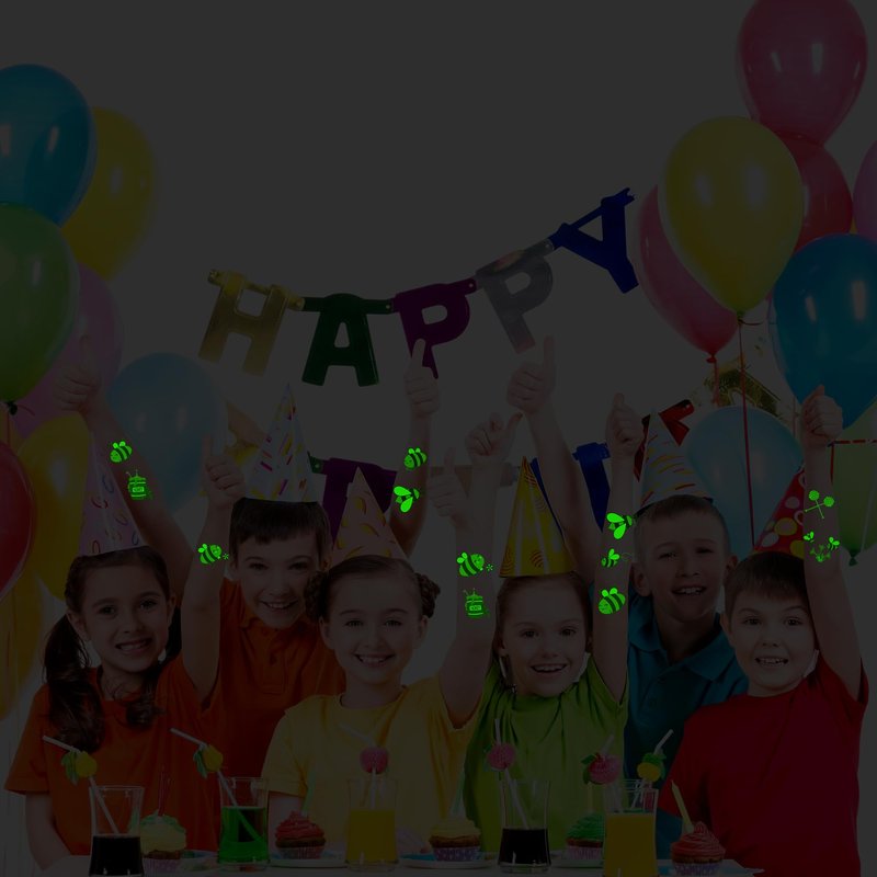 Glow In The Dark Bee Temporary Tattoos,24 Sheets, Bumble Bee Birthday Decorations Party Favors