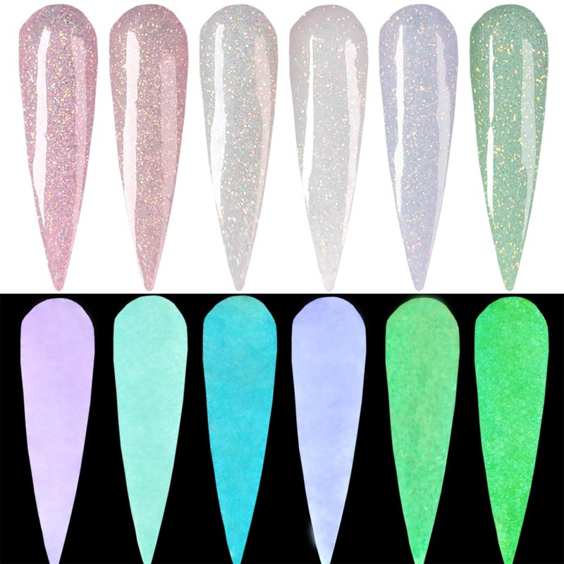 - ❤️GLOW IN THE DARK Glitter Nail Dip Powder Colors 6pcs set ( Dip Liquid Set Not Included)