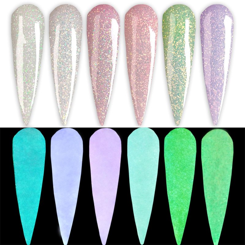 GLOW IN THE DARK Glitter Nail Acrylic Powder 6 Colors Set for Pink White French Nail Art Design