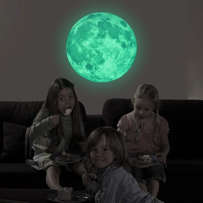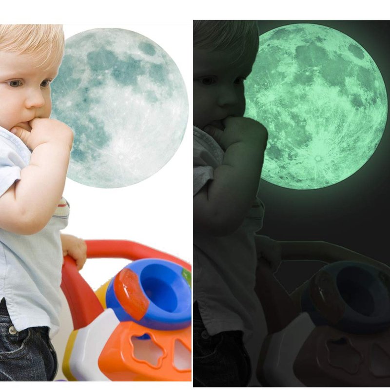 - Why Will It Glow In The Dark - Creative glow in the dark moon wall decal seems like a magic, the unique powder absorbs the natural light and then release in the darkness, it's harmless to our body.