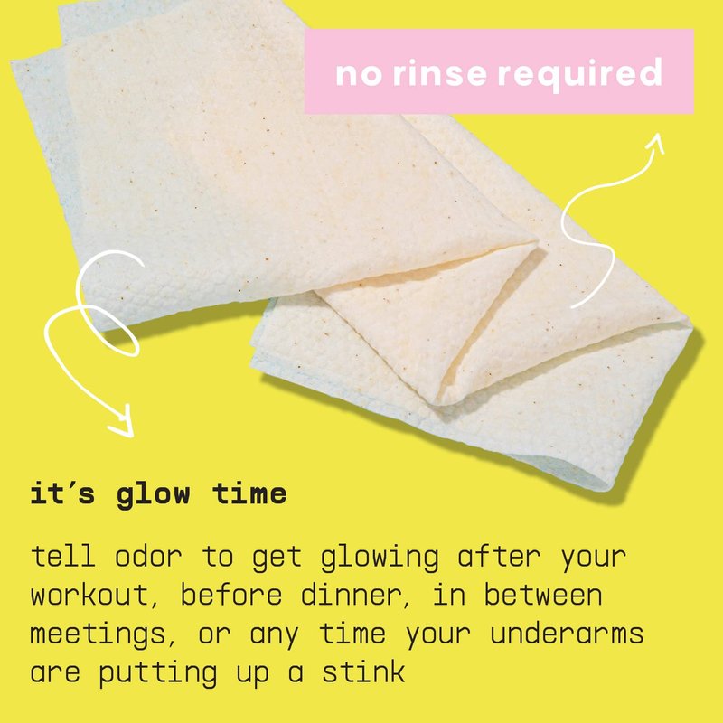 - It’s Glow Time: These extra-large wipes banish odor-causing organisms from your underarms without the harsh ingredients you’ll find in ordinary antiperspirant wipes, body wipes for women, and traditional deo sticks. Bigger area coverage without leaving behind any waste. Perfect for an after-work glow-up, post-workout, and for messy moments you’ll meet while on the go.