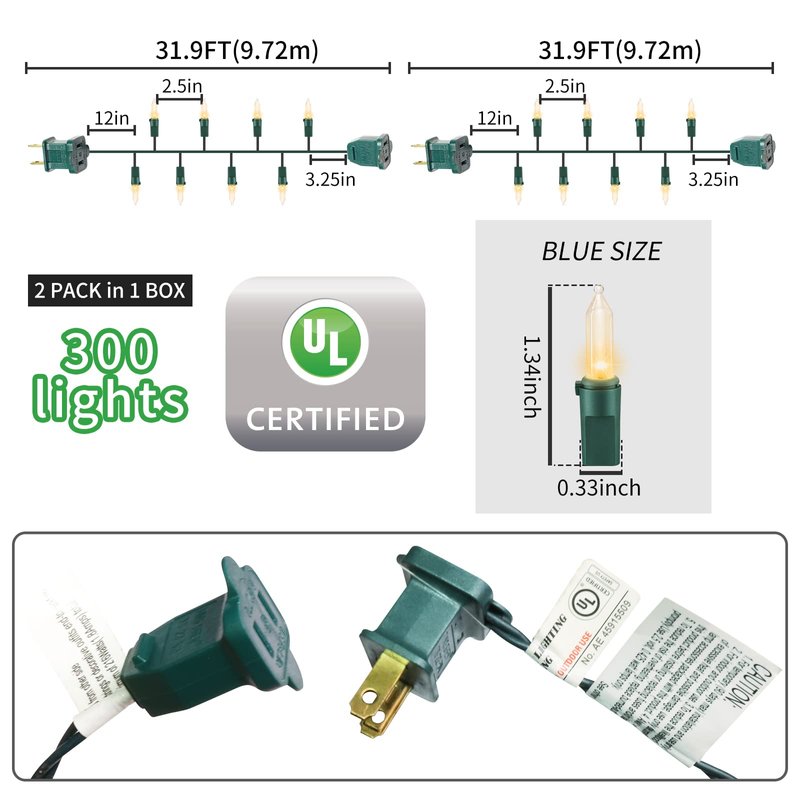 GLOWNOVA Green Wire,Yellow Incandescent Bulb 300 Mini String Lights for Indoor Christmas Tree Garland Birthday Wedding Party Festival Decoration