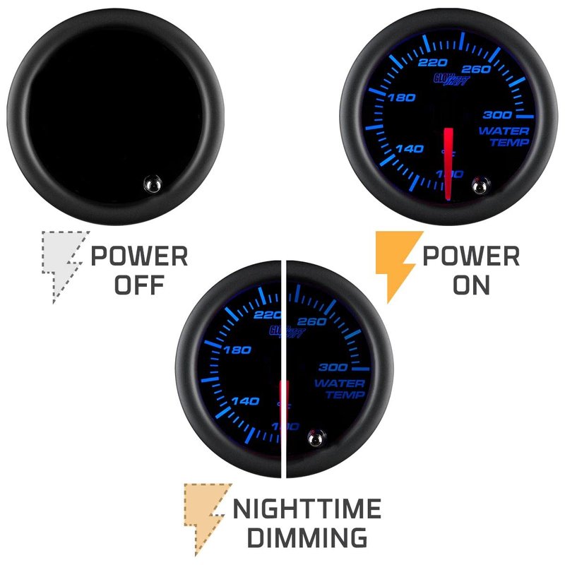 - GlowShift Tinted 7 Color Series Water Temperature Gauge is Designed to Monitor & Display the Coolant Fluid Temperature Running Through Your Car or Truck's Radiator System