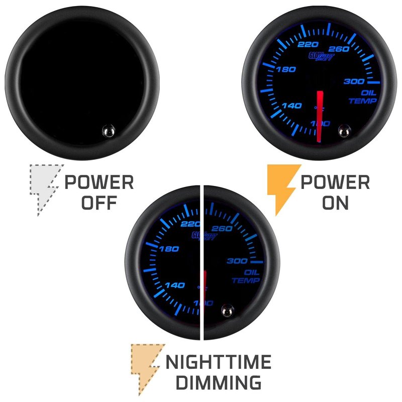 - GlowShift Tinted 7 Color Series Oil Temperature Gauge is Designed to Monitor & Display the Oil Fluid Temperature Running Through Your Car or Truck's Engine
