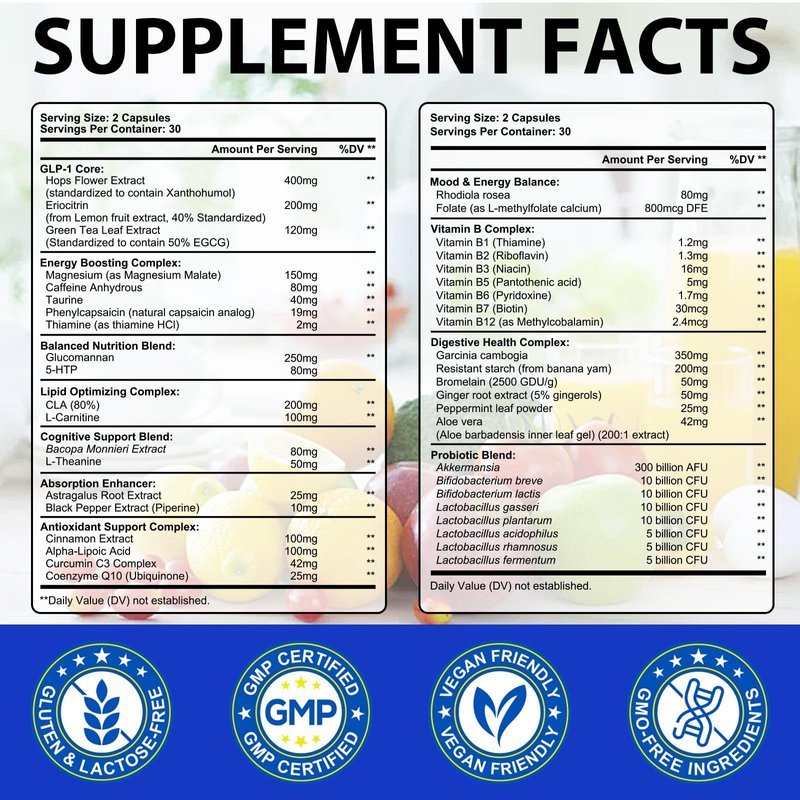 - Natural GLP-1 Supplement for Women & Men: Our GLP-1 supplement uses carefully formulated ingredients including Akkermansia probiotics, hops, green tea extract and nutrient-rich plant compounds to help maintain metabolic and digestive balance and promote natural GLP-1 levels.