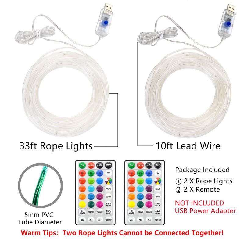- 【Wide Application】Each Indoor/Outdoor Rope LED Light 33ft Length, 2 Pack, You Can Make Any Diy Modeling In Indoor For Your Christmas Tree Wedding Living Room Or Hall Stairs, In Outdoor For Your Garden Plants And Etc.