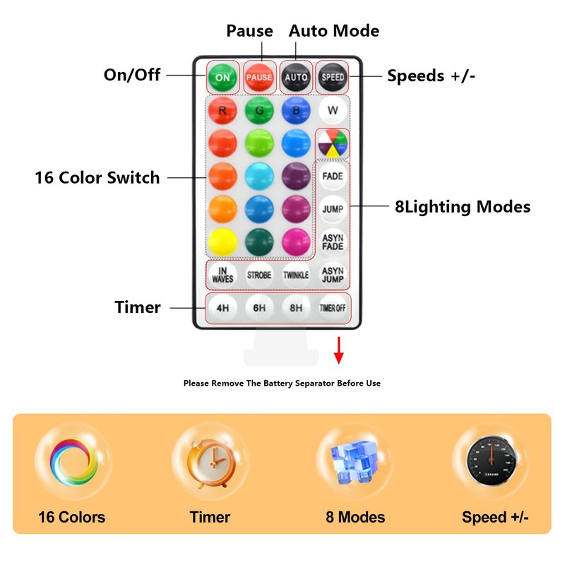 - 【Intelligent Timer】 Rope Lights Indoor Have Three Time Settings Of 4, 6, And 8 Hours, And You Can Freely Choose The Lighting Time According To Your Needs.