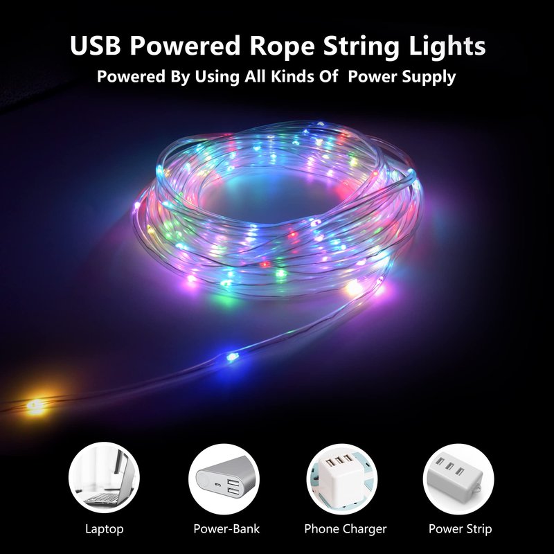 - 【USB Powered Design】LED String Lights Work With Low 5V Voltage, Equipped With An Intelligent Chip, Use The Light By Plugging Into Phone Charger, Computer, Power Bank And Etc(Not Included Plug). Bring The Night Lights If You Want To Add More Atmosphere For Your Travel, Camping, Hiking And Etc.