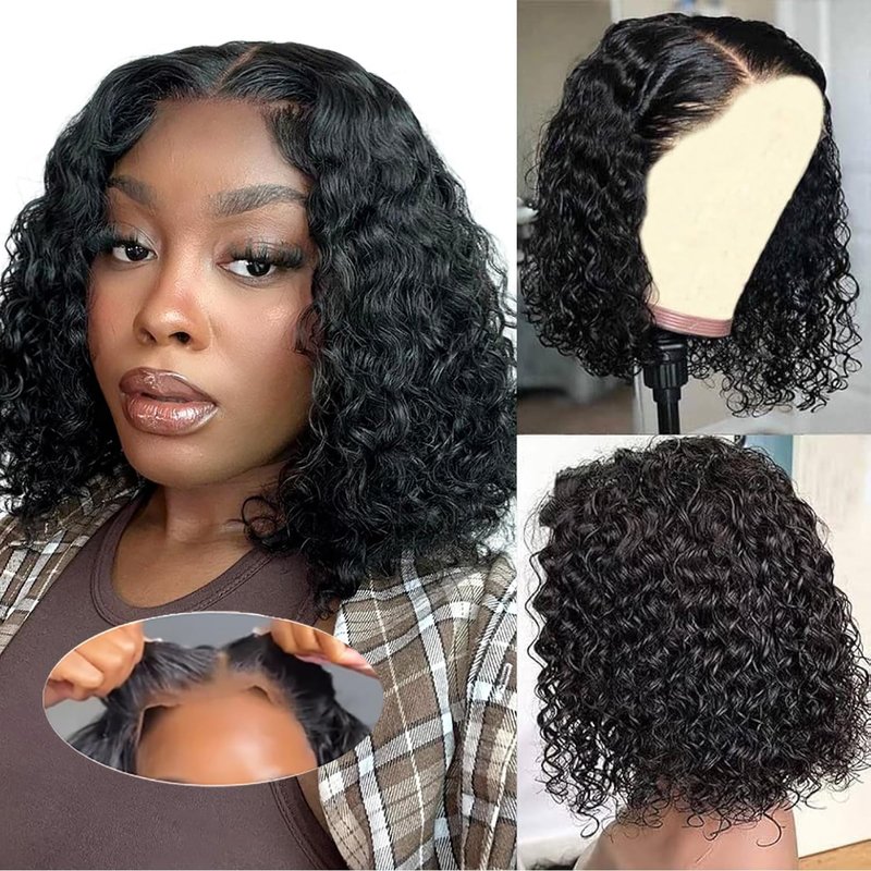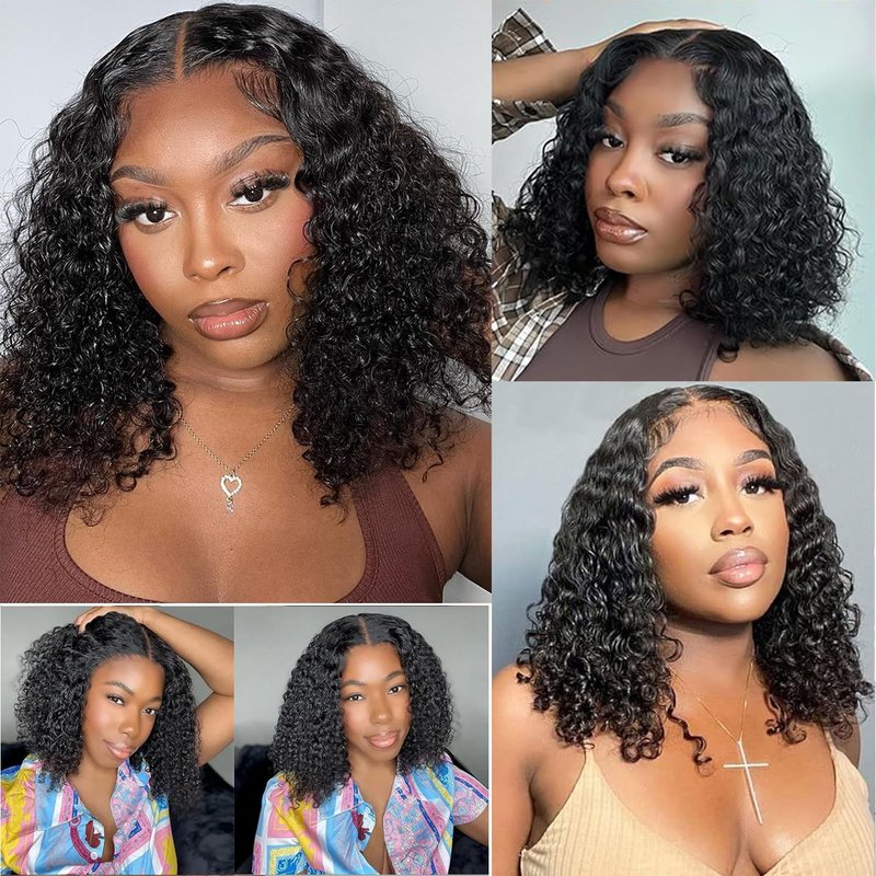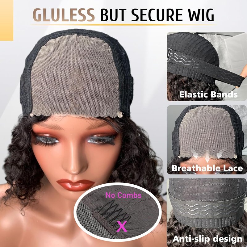 - 💕Package Included: 1 Deep curly Glueless Bob Wig Human Hair + 1 Wig Cap + 1 Pair of Eyelashes + 1Nail Patch (random color)