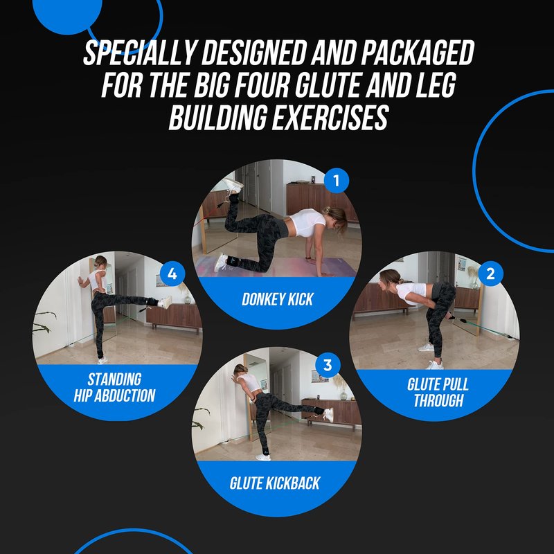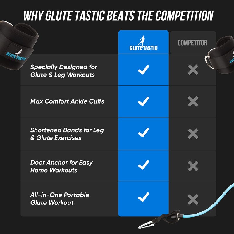 - Ultra Effective Glute and Butt Workout - Build a harder, rounder, bigger booty with the all in one Glute-Tastic latex rubber workout bands set. Build your legs, hips, and calves with our guided exercises. Rubber exercise bands offer the most versatile range of motion, building not just your primary muscles but also support muscles at the same time.