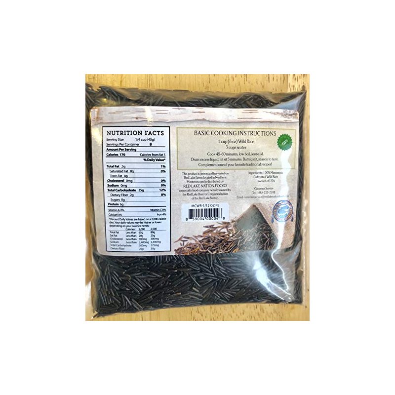 (GLUTEN FREE) Red Lake Nation 100% All Natural Minnesota Cultivated Wild Rice, 12 OUNCES