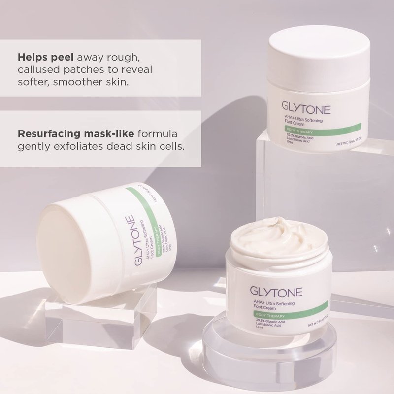 GLYTONE AHA+ Ultra Softening Foot Cream With 29.5 Glycolic Acid & Lactobionic Acid, At-Home Treatment, Exfoliate, Hydrate, Retexturize, Callused Skin, 1.7 oz.