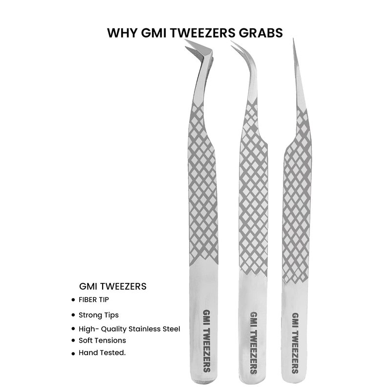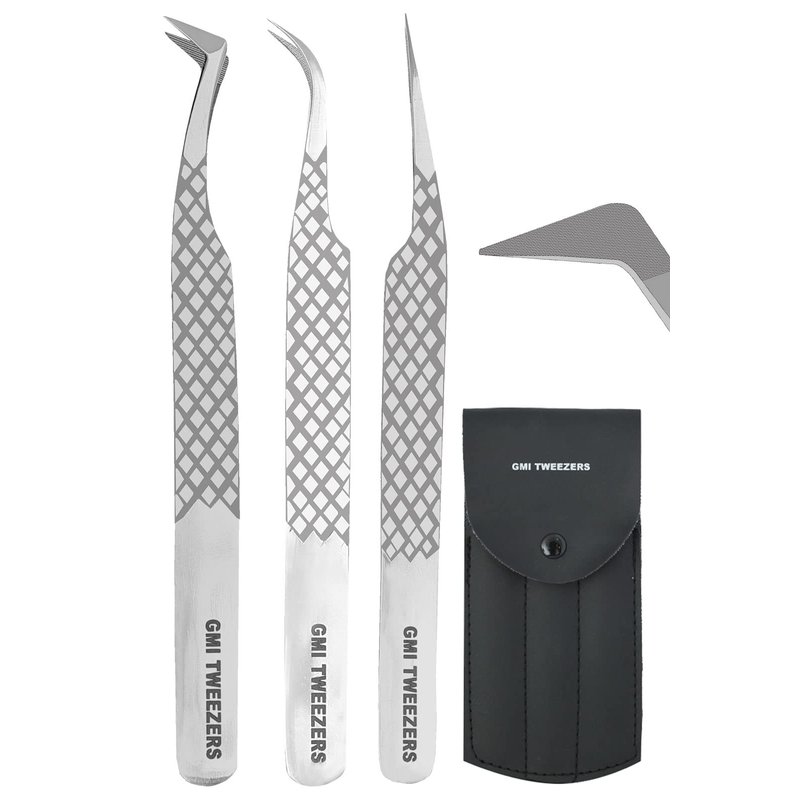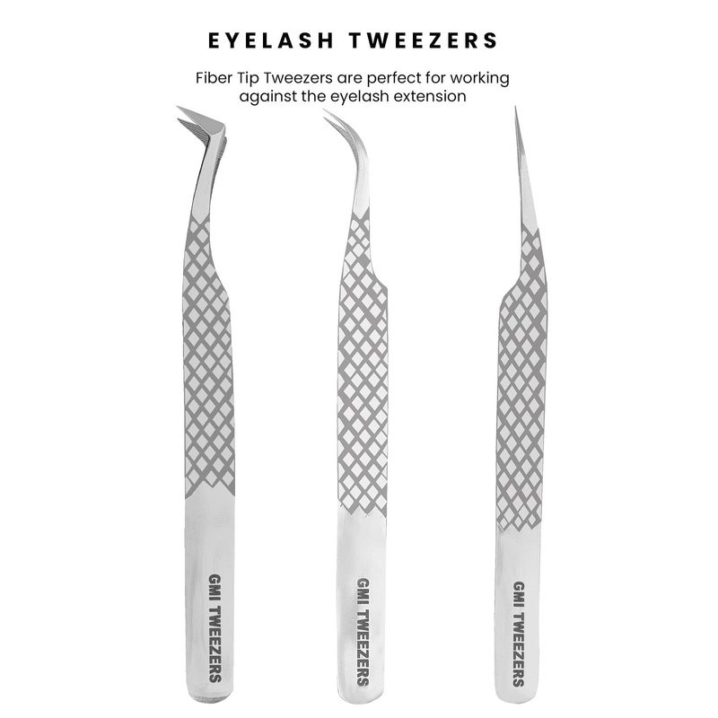 GMI Lash Tweezers - Pack of 3 Firber Tip Eyelash Tweezers - Stainless Steel Eyelash Extension Tweezers