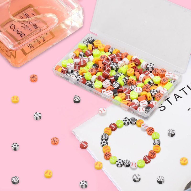 - Beads are made of polymer clay, a type of PVC material. Eco-friendly, non-toxic, strong plasticity, and durability. The diameter of clay beads is 10mm with a 2mm hole and thickness is 5 mm. The clay beads for bracelets are lightweight, not easy ro fade, comfortable to wear and waterproof when you wear it at the beach or pool.