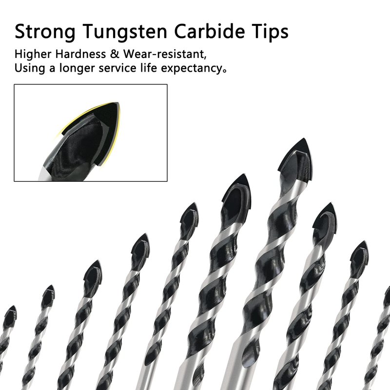 - [Industrial Grade Material]:Made of selected high-strength alloy steel materials that prevent bit cracking and provides a longer life. Tungsten carbide tip can easily penetrate various materials, the hardness is higher than the ordinary drill bit.