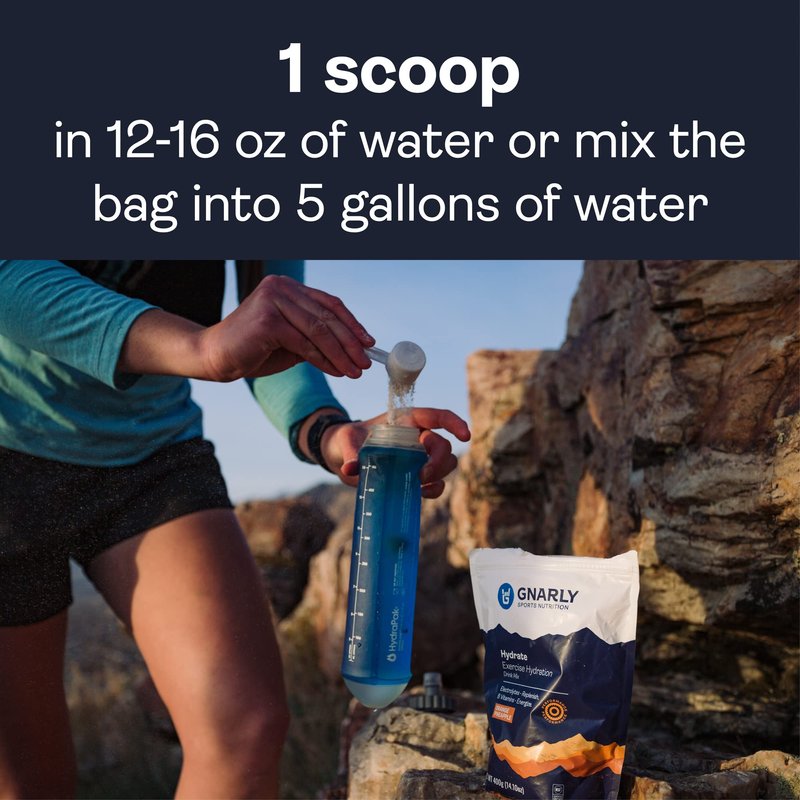 - Easy Hydration: Gnarly Hydration has just enough sugar to effectively deliver electrolytes without causing gut discomfort. Mix 1 scoop or 2tsp in a 12-16oz bottle of water.