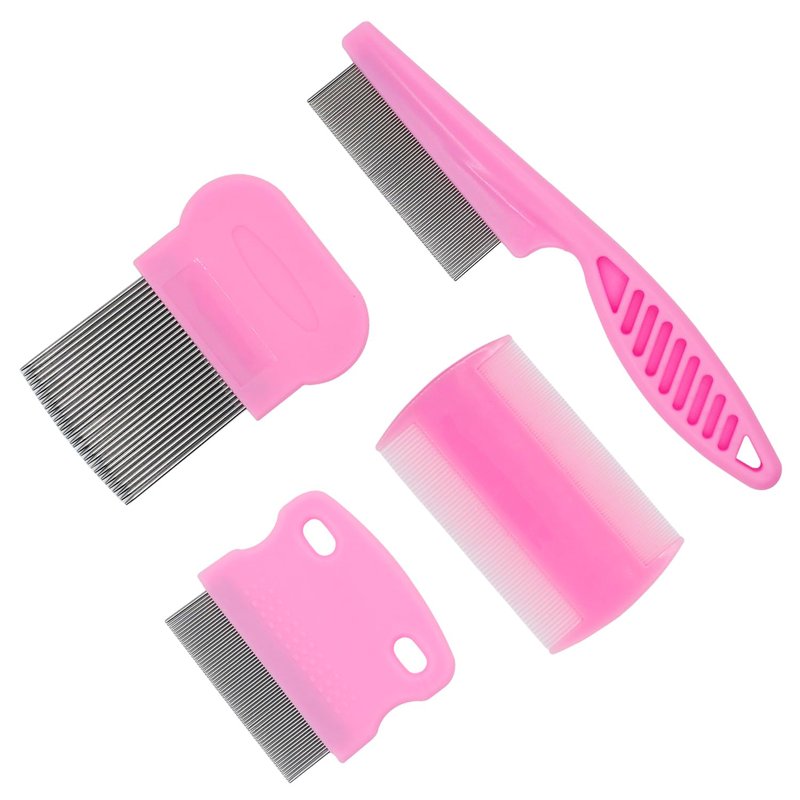 GNAWRISHING Flea Comb 4-Pieces-Pink with High Strength Teeth Durable Pet Tear Stain Remover Combs, Dog Cat Grooming Set Effective Float Hair Remover