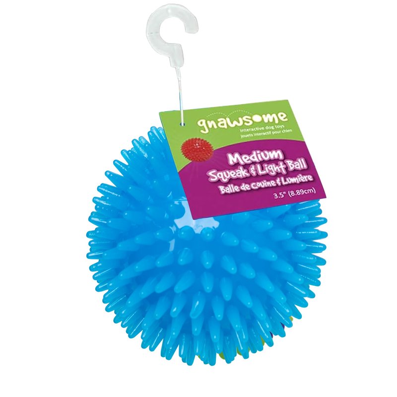 Gnawsome™ 3.5” Spiky Squeak & Light Ball Dog Toy - Medium, Cleans Teeth and Promotes Good Dental and Gum Health for Your Pet, Colors will vary, 3.5"