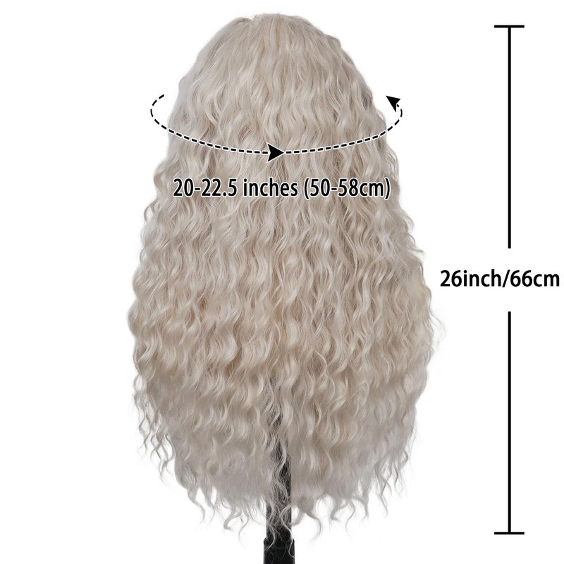 Get ready to stand out from the crowd with the eye-catching platinum blonde color of this long, wavy, and curly wig. Its vibrant blonde hue is perfect for making a bold fashion statement, whether you're attending a costume party, dressing up for Halloween, or cosplaying your favorite character.