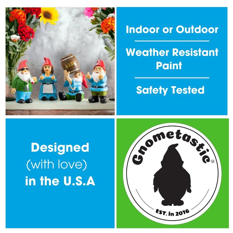 Gnometastic Double Bird Gnome, 3.5in Tall Mini Garden Gnome Figurine - Naughty, Small Gnome Garden Statue for Fairy Garden, Indoor, Outdoor Decoration - The Original Double Bird Gnome, 3.5" inch Gnome Mini - Middle Finger Garden Gnome for Fairy Garden, Terrarium, Planter or Home Decor - Introducing the Double Bird Gnome Miniature Figurine. This tiny gnome has the same bad attitude: angry, rude, offensive and downright inappropriate for some audiences. This little gnome dislikes cats, squirrels and yappy dogs. He has added fairies, fairy garden parties and neighbors to the list of people and things that piss him off. Use as a cheeky home decoration, funny garden decor, funny desk accessory or desk toy for adults. Funny decoration for your yard, porch, home or office. Do you love knomes or know someone who does? Our gnome will make a fantastic pothead gifts for stoners. Gnometastic represents not just funny lawn ornaments but a lifestyle. Our Garden Gnomes have charisma, attitude and just a whole lotta in your face Awesome (and a lil bit tacky). Embrace your inner love of novelty, weird and gag gifts! Proudly display your Gnometastic Gnomes - it's not just a funny lawn gnome - it's art. These quirky little guys will make a hilarious decoration to any landscape they adorn - indoor and outdoor: garden decor, the kitchen, work or home office, the bathroom (?!), just about anywhere! If you have an appreciation for funny garden gnomes, or just possess an inappropriate, offbeat sense of humor, our gnomes will appeal to you and make great gifts for your family and friends and their friends! (Enemies too, but we take no responsibility for that one!) Stands 3.5" inches Tall x 1.5" inches Wide | Mini gnome figurine weighs 3 ounces | Made from Poly Resin. Weather Resistant. | Safety Tested: Complies with CA Proposition 65. Made from Polyresin. Made in China, Designed in the USA.