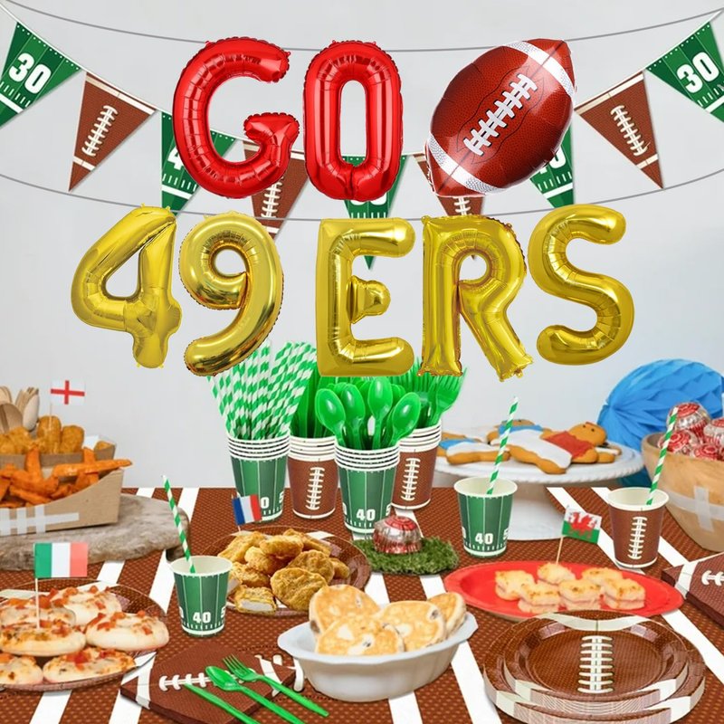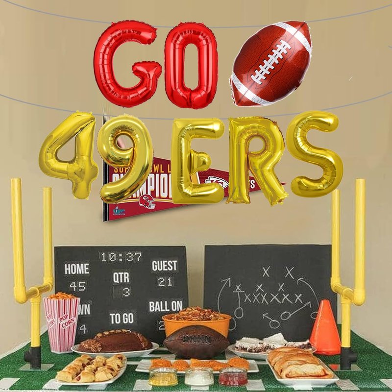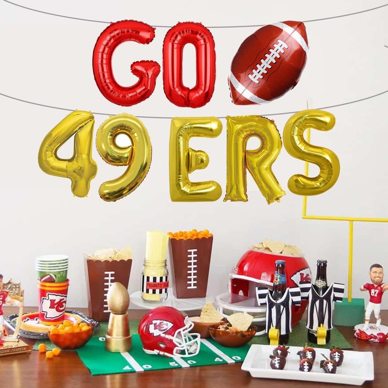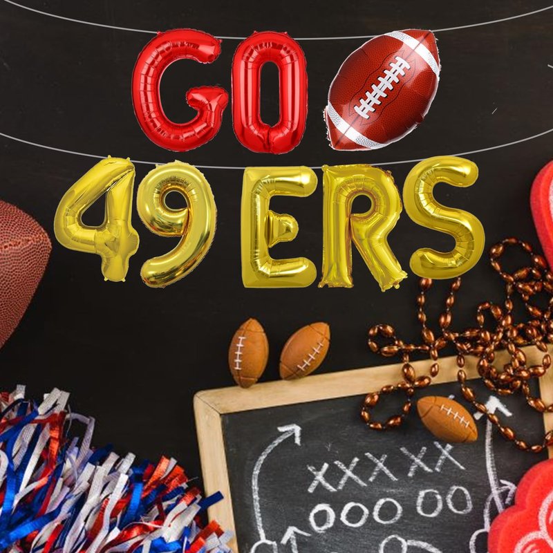 - Football Banner - This Go 49ers balloons banner is a perfect collection for your sports party decoration, it is an easy way to decorate your party, it will brings the real fun and unforgettable memory at your party, make a deep impression on you, making your party more relaxing and attractive.