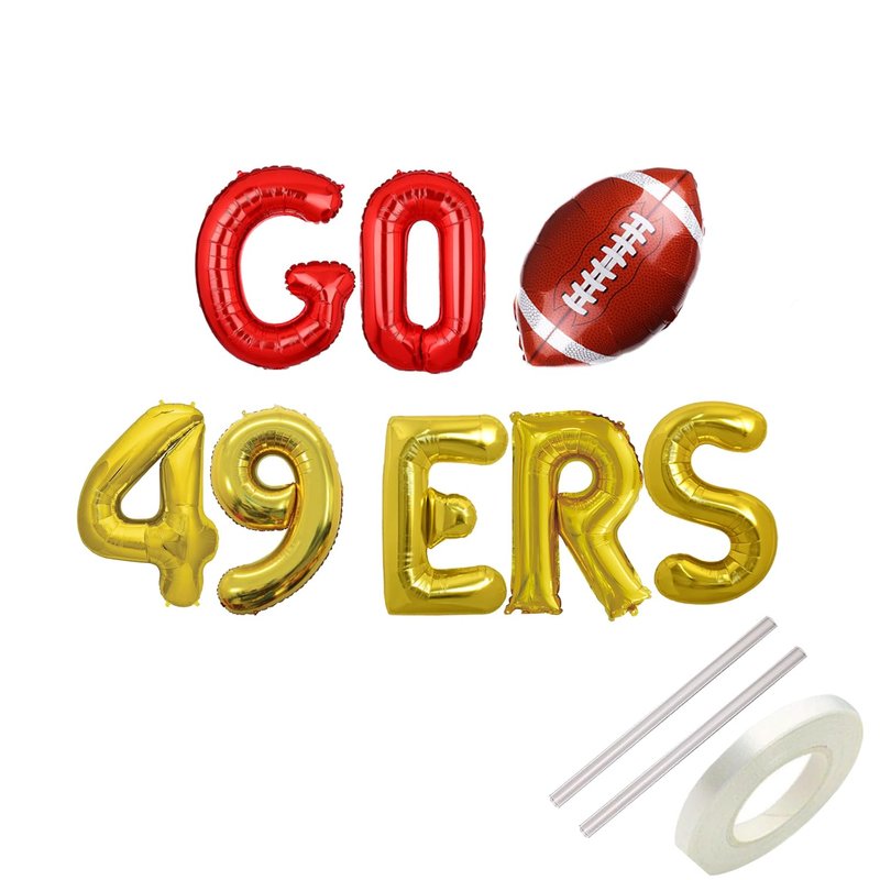 - Package Includes 16 inches tall “GO 49ers” letter balloons and 2 straws, 1 roll white ribbon.