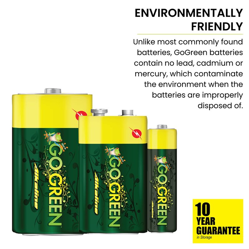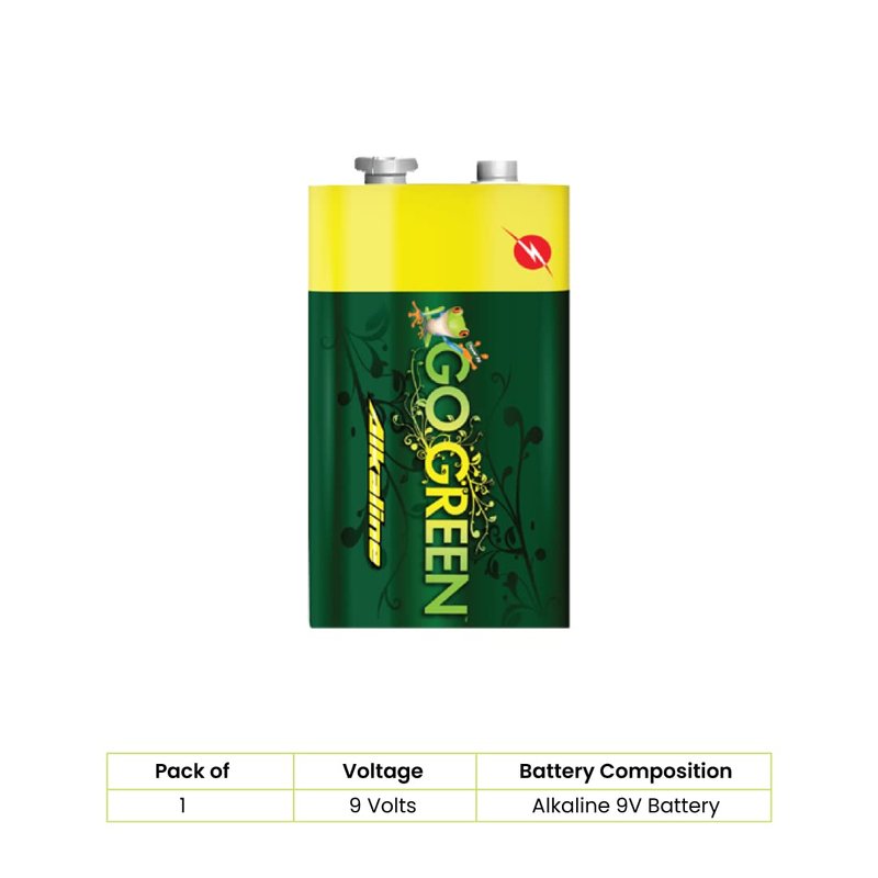 - Alkaline 9V Batteries: GoGreen Power Alkaline 9V batteries are an ideal choice for all your high-draining devices. This 9V battery is the perfect choice for eco-conscious customers.