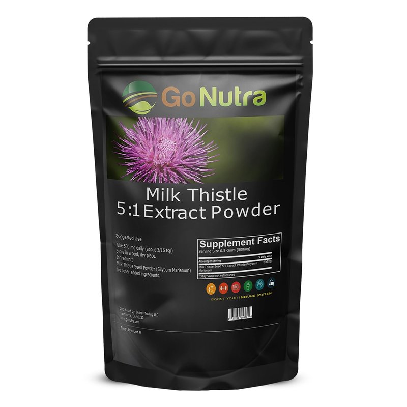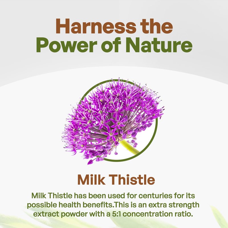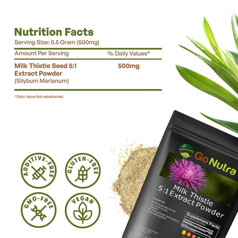 - Concentrated Extract - Lean into the power of nature and harness the benefits of our potent Milk Thistle extract! Go Nutra’s Milk Thistle powder boasts a 5:1 ratio potency, providing a concentrated dose of its beneficial properties for enhanced wellness.