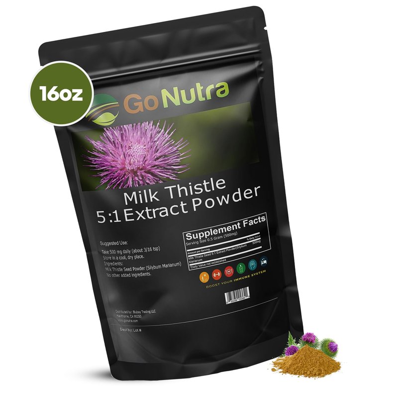 Go Nutra Milk Thistle Powder 1 lb. | Milk Thistle Extract 5:1 Strength Silymarin | Silybum Marianum Herbal Supplement Non-Gmo