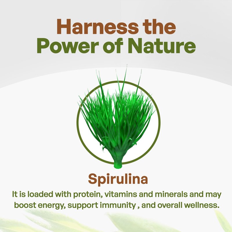- Recharge With Spirulina - Experience vitality and overall wellness with natural superfoods. Our spirulina natural health boost is a nutrient-dense formula, delivering a concentrated, whole-food dose of vitamins, minerals, and antioxidants to your body.