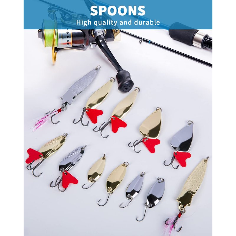 - 🎣High Quality Material: All fishing accessories made of stainless steel and soft plastic, which is not easy to defrom, and has anti-corrosion, durable and practical characters. All of these bass and trout fishing lures experienced precision processing, longer service life than other fishing bait.