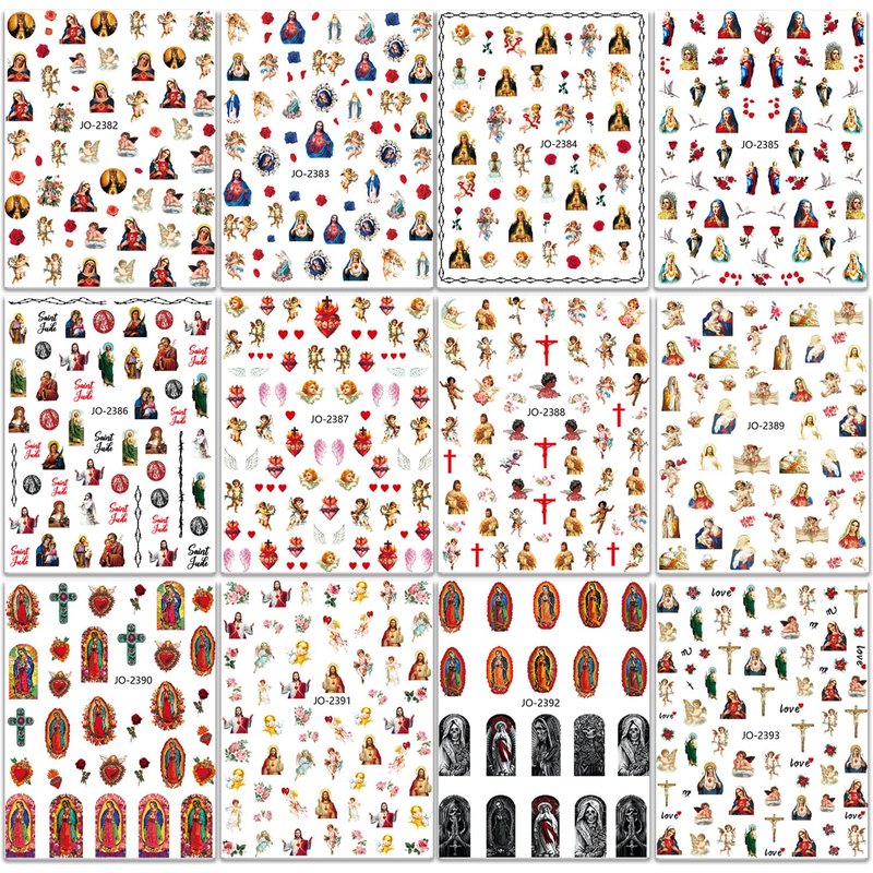 Package Contents: 12 Sheets Christ Jesus and Virgin Maria Nails Art Sticker
