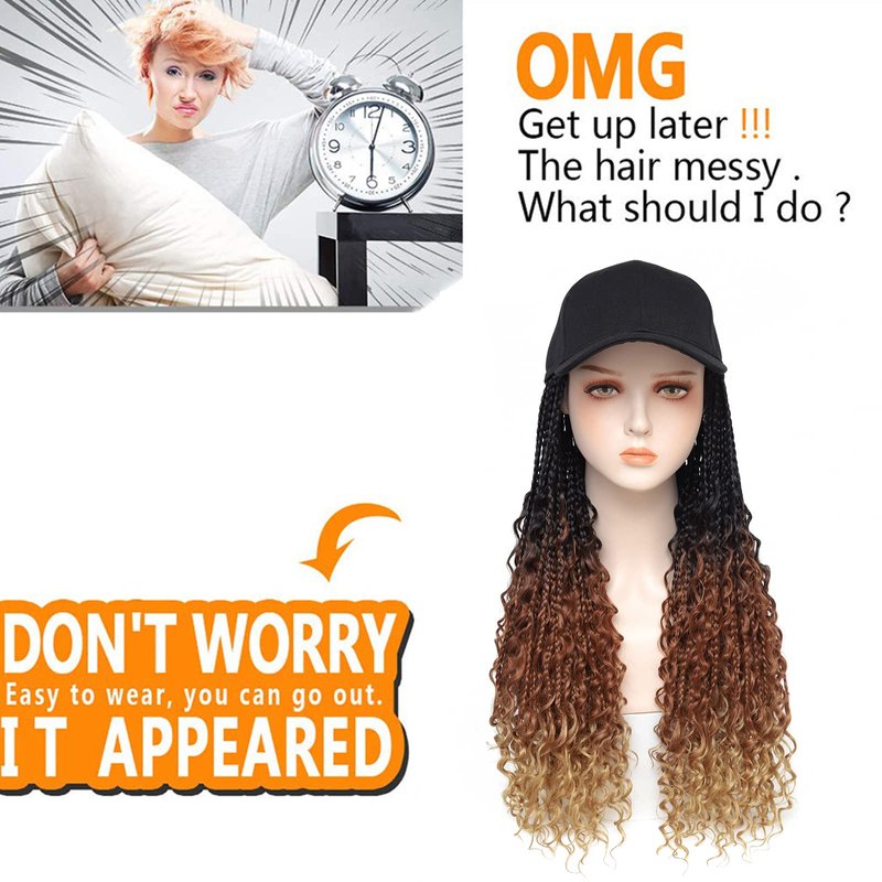 - Braided Hair Wig Material: The braided hat wig is made of high quality hand-made boho box braids with a baseball cap. It is fashion, natural and fascinating. Different colors available for making choice. Hat with Crochet box braids are relatively low maintenance and are a great style for your every day look.