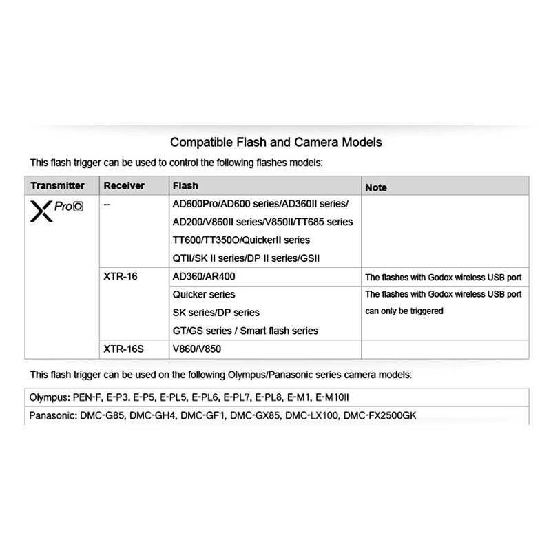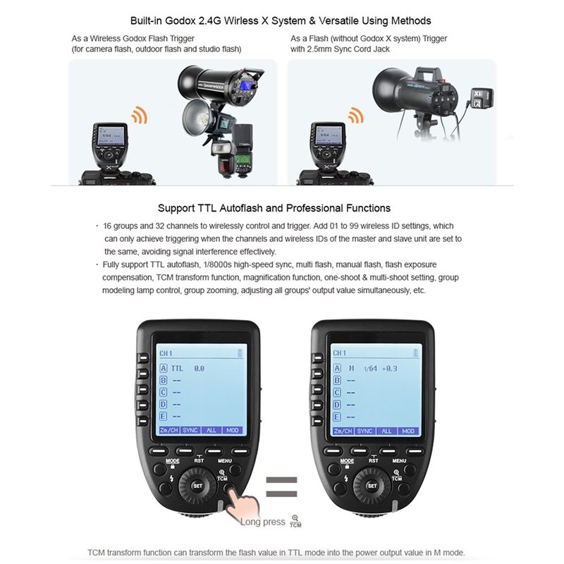 - Xpro-O TTL Wireless Flash Trigger can not only control the flashes with built-in Godox wirelesss X system, e.g. cameras flashes, outdoor flashes and studio flashes