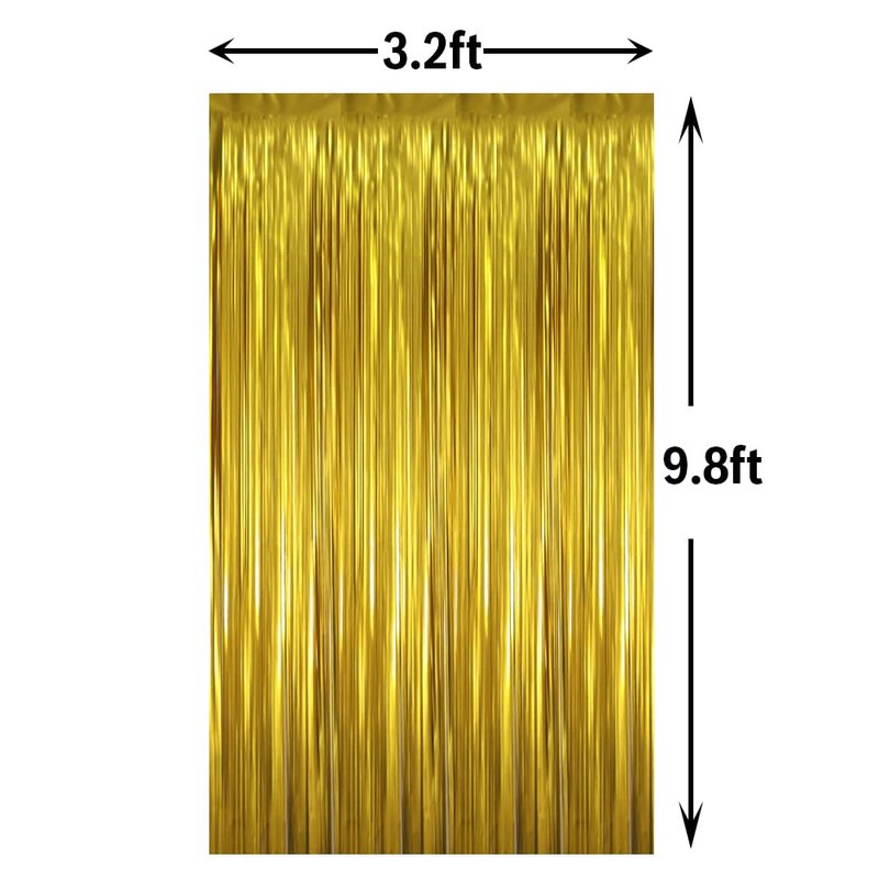 - Package Includes:2 pack matte gold foil fringe curtains,3.2 ft x9.8 ft each,suitable for hanging on a door or coverage a wall fully