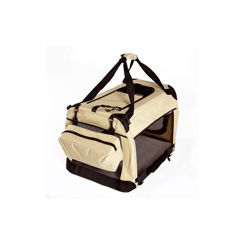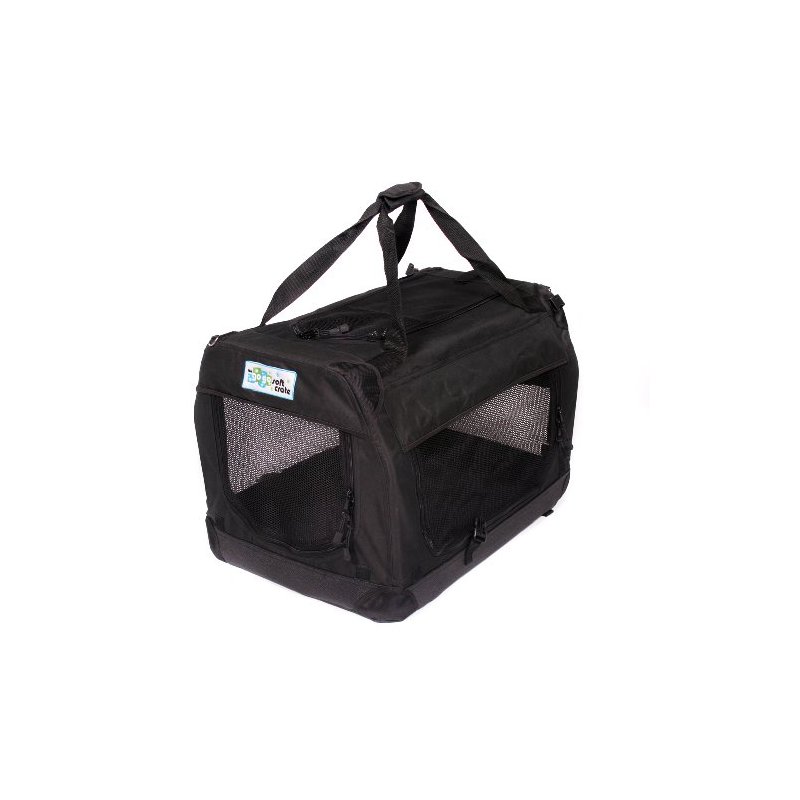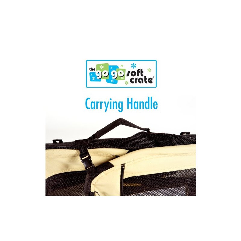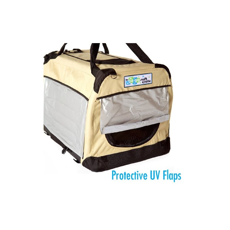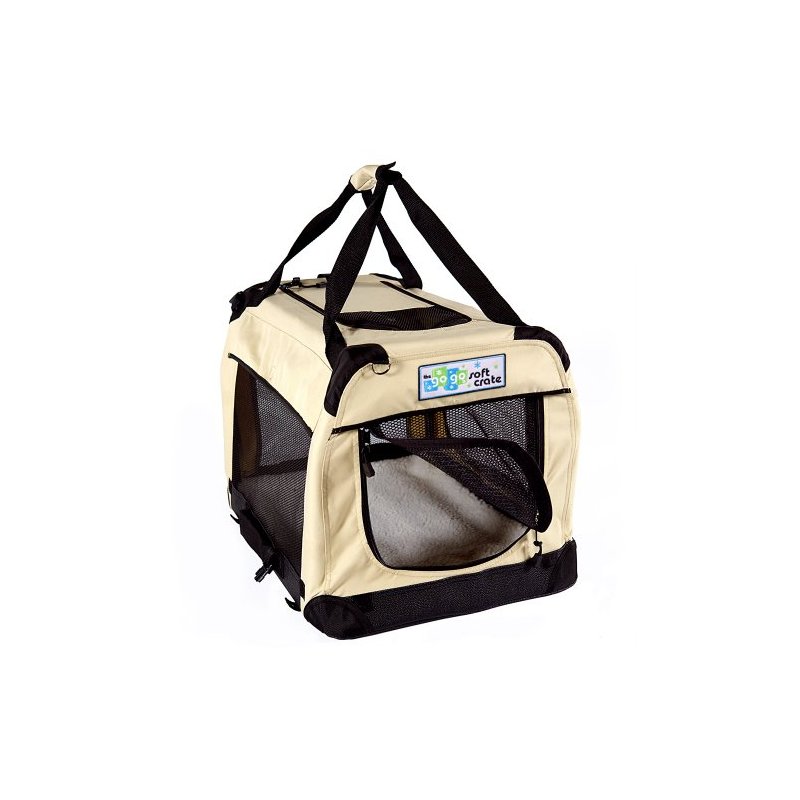 Folds down for easy transport. Complete with carrying handle. The GoGo Soft Crate is made from heavy duty water resistent canvas material with 1000D reinforced canvas corners. The bottom is made with a water resistent faux leather. Comes with a machine washable fleece pad. The frame is made with a durable powdercoated tube frame that is easy to fold. Great for indoor or outdoor use. The GoGo Soft Crate is the absolute safest crate available.
