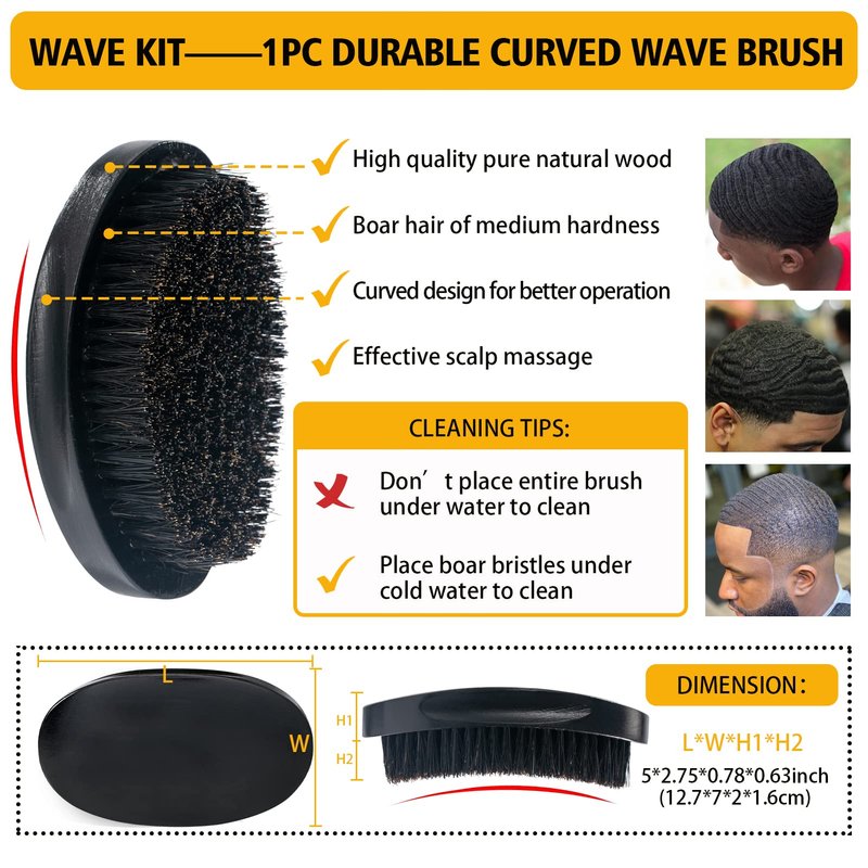 - 【 Premium Quality 360 Wave Starter Kit for Men Hair 】 The 360 wave has always been a popular hairstyle in the African American community, and our 360 wave kit allows you to get a satisfying wave look on your own, packages includes 1* wave pomade +2*pocket palm combs +3* silky Du-rag +1* wave cap +1* curved wave brush.