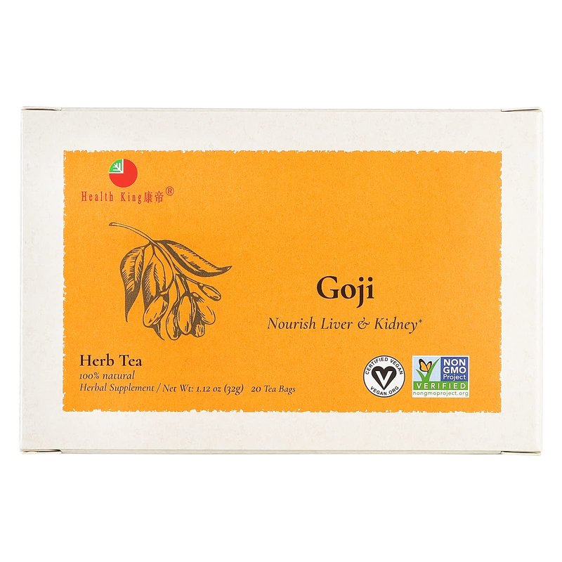 Goji Herbal Tea by Health King - Nourishes Liver & Kidney - (1 Pack, 20 count Teabags, with Non-GMO, Vegan, Goji Berry & Leaf, Polygonatum Root, Eleuthero Leaf, Perilla Leaf, Prunella Vulgaris)