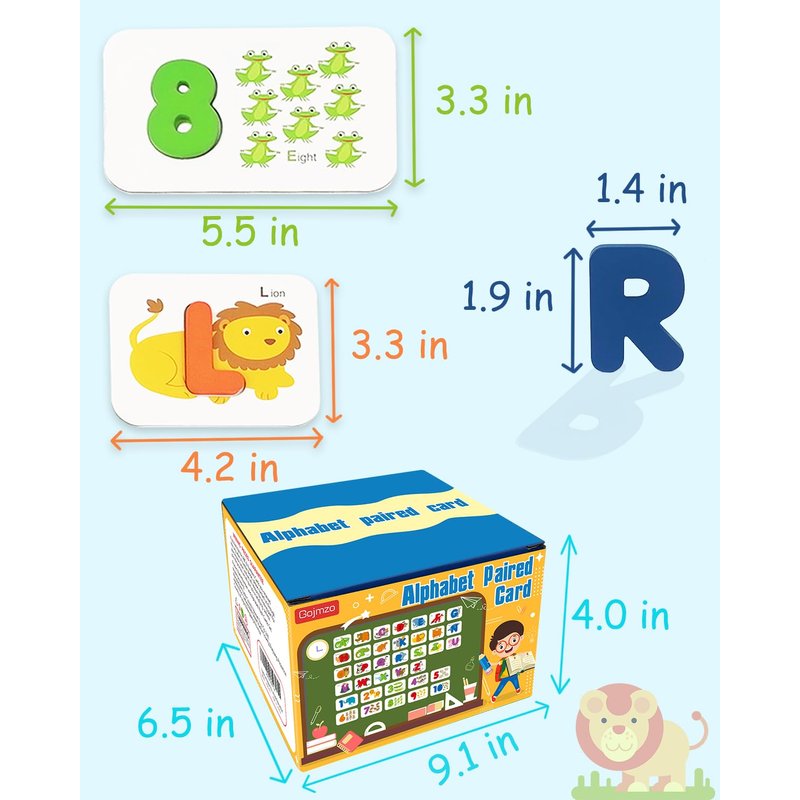 Gojmzo Number and Alphabet Flash Cards for Toddlers 3-5 Years, ABC Montessori Educational Toys Gifts for 3 4 5 Year Old Preschool Learning Activities, Wooden Letters Animal Flashcards Puzzle Game