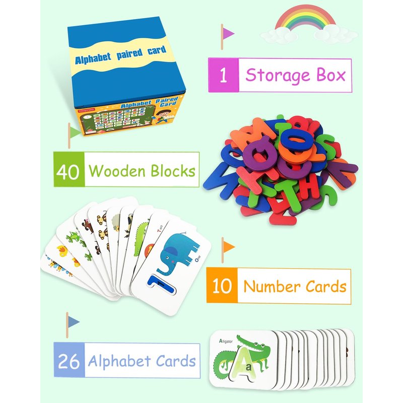 - EASY TO TIDY UP: Are you afraid to tidy up?Our alphabet flash cards will make it easy not to pack up your child's toys. This set of flash cards comes with a storage box. After the little ones have finished playing with these wooden blocks and learning cards. They can easily sort toys into boxes and collect them. Help them develop a good habit of tidying up. Keep the games room neat and clean.