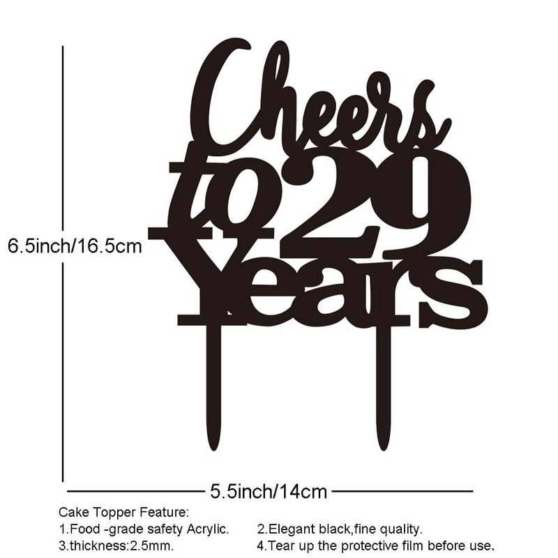 - 1.Birthday Decoration Set: This Gold 29th birthday decorations sets include everything you’ll need to celebrate the 29 birthday.Package includes- Gold 32 inch Foil Balloon(2pcs), "CHEERS TO 29 YEARS" banner (1set), latex balloons in black/white/gold color (16pcs in all), pre-filled gold confetti balloons(8pcs), Star Foil balloons(4pcs), Birthday Sash(1pcs), Arylic cake topper(1pcs Black), Gold tinsel foil curtains(1pcs), Champagne& glass(2pcs),paper Straw(2pcs)