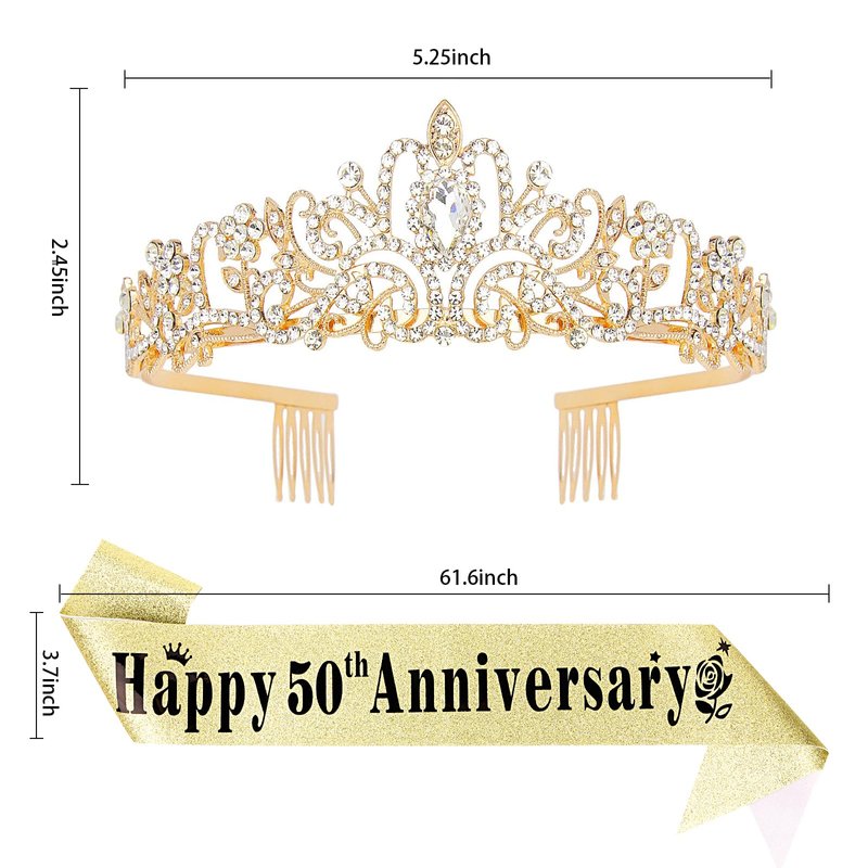 - Package Included: The package contains " Happy 50th Anniversary" sash, a tiara and a pearl pin. You will be like a queen in your celebration