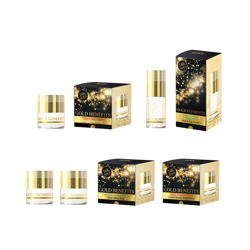 Sea of Spa labs is proud to present the brand new gold series "Gold Benefits". The series contains unique formula of 27 Dead Sea minerals combined with Hyaluronic Acid and 24k gold that creates intensive highly moisture cream that temporary lifting the skin. The wonderful texture helps to nourish, restore sand enriches the skin's moister level, by leaving soft feeling and shiny look that make your skin looks bright for hours. The series contains 5 products: day cream, night cream, facial serum, eye cream and lifting mask and covering a complete and professional treatment. The products are ideal as a base for makeup and should be applied on cleaned skin. Who said that high quality must be reached out of hand? Luxury has never been more affordable with "Gold Benefits" cosmetics. Enjoy