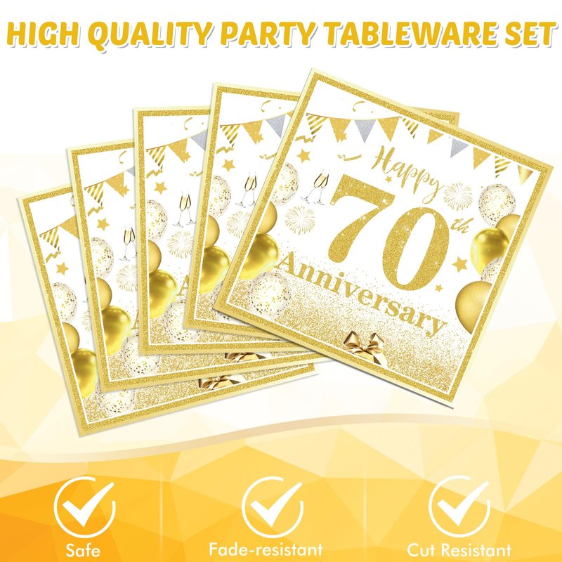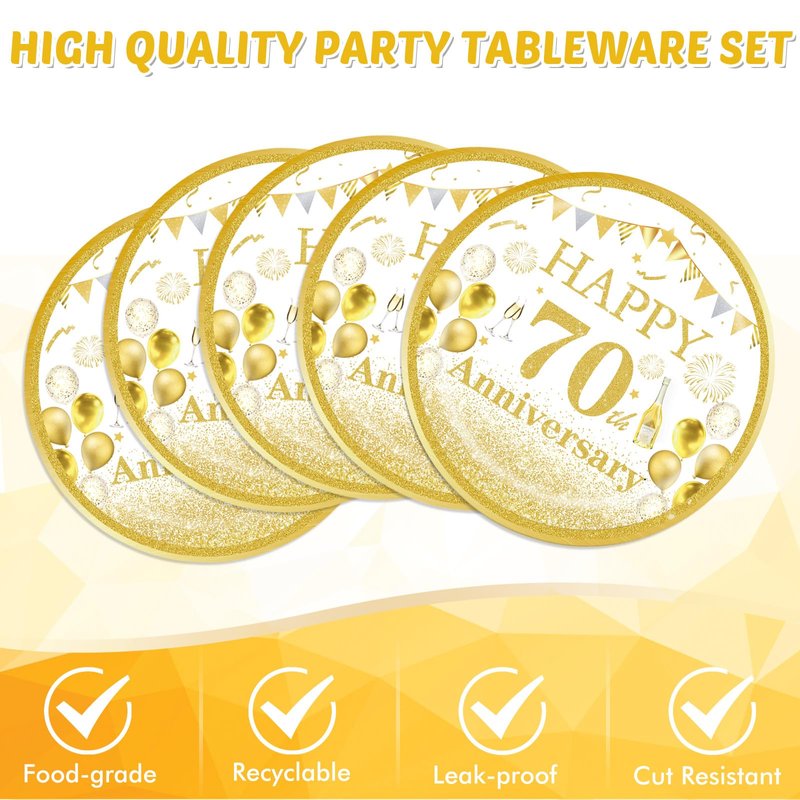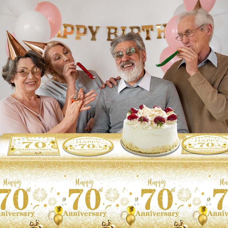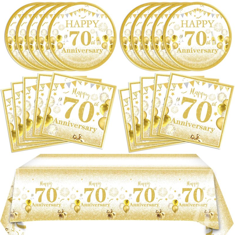 - Exquisite Design: 70th wedding anniversary party decorations come in white and gold colors, full of elegant and modern flavor. Rich anniversary elements, with the words "happy 70th anniversary" printed in the middle, next to white and gold balloons, champagne, wine glasses, and gold glitter.70th anniversary party decorations will make your party full of happy atmosphere and leave unforgettable memories.