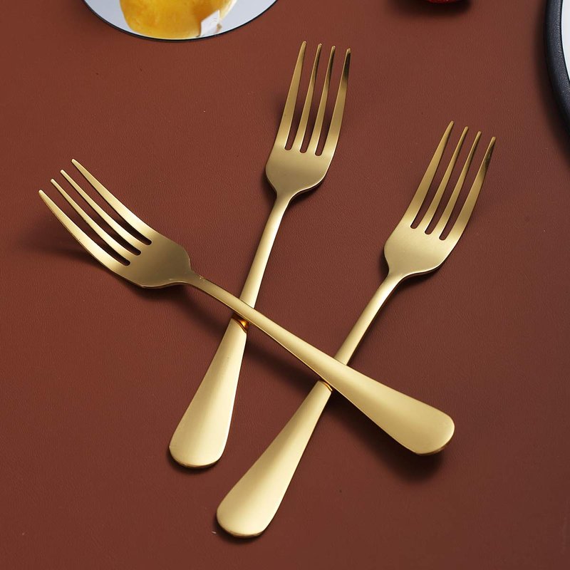 - Set of 12 stainless steel 7.9" titanium gold plating dinner forks, heavy duty and durable. Great for everyday use, hotel, restaurant, entertaining, holiday meal, parties, wedding, special event.