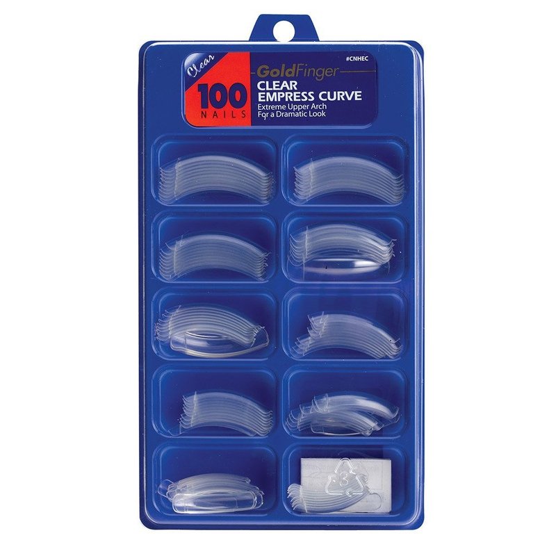 Gold Finger 100 Pcs Acrylic Clear Fake Nails Tip Empress Curve Arch Full Cover Clear Press on Nails DIY Nail Art Nail Extension Artificial French Nail (2 Pack)