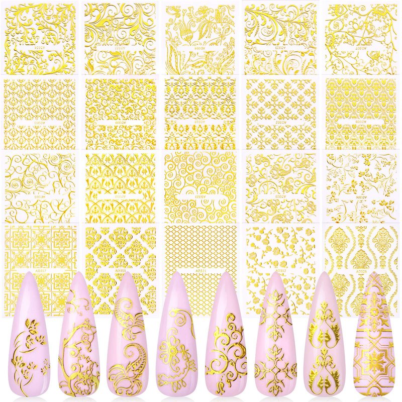 - ❤VARIOUS PATTERNS: Package includes 20 sheets different gold Flower Lace Nail Art Stickers. Fashionable and cute designs of Flower Vine Nail Decals.