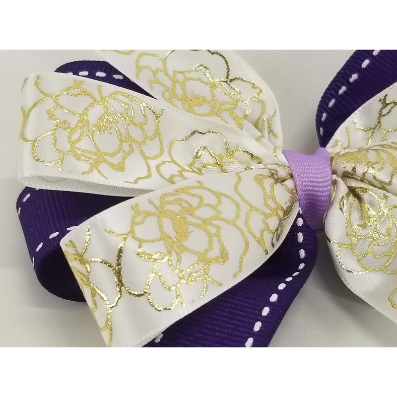 Gold Flowers & Purple Hair Bow