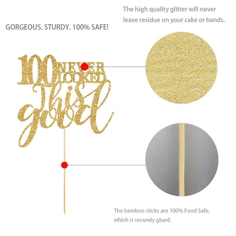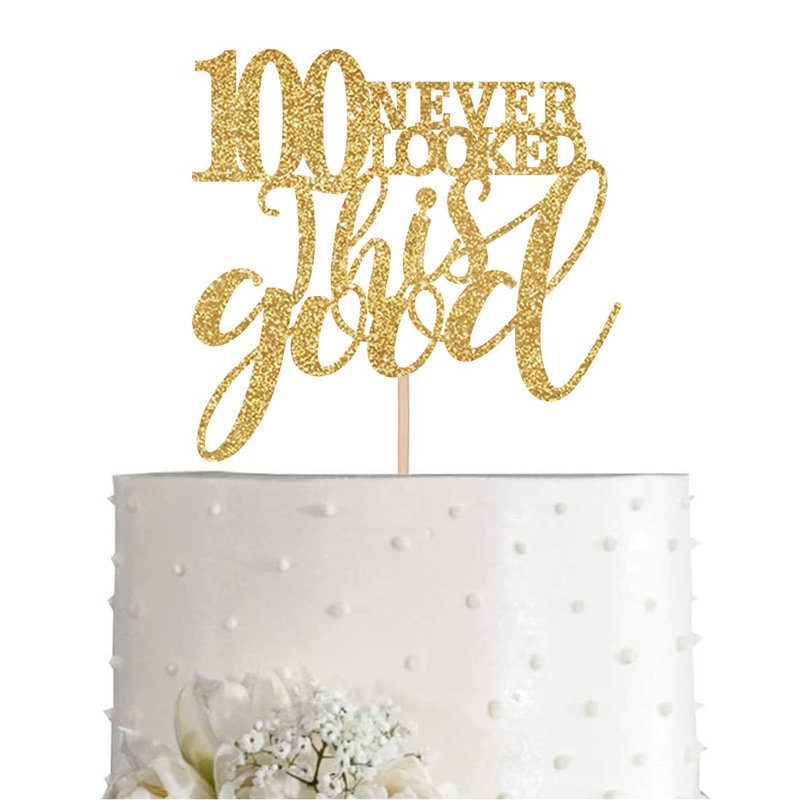 Gold Glitter 100 Never Looked This Good Cake Topper, Women Gold Happy 100th Birthday Cake Topper, Birthday Party Decorations, Supplies
